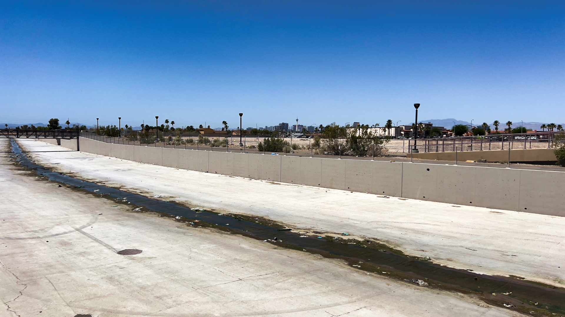 We are also pretty far from everything else as it relates to the main strip and downtown casinos, as you can see in the next photo. Additionally in this photo is the aquaduct from the Las Vegas wash.
