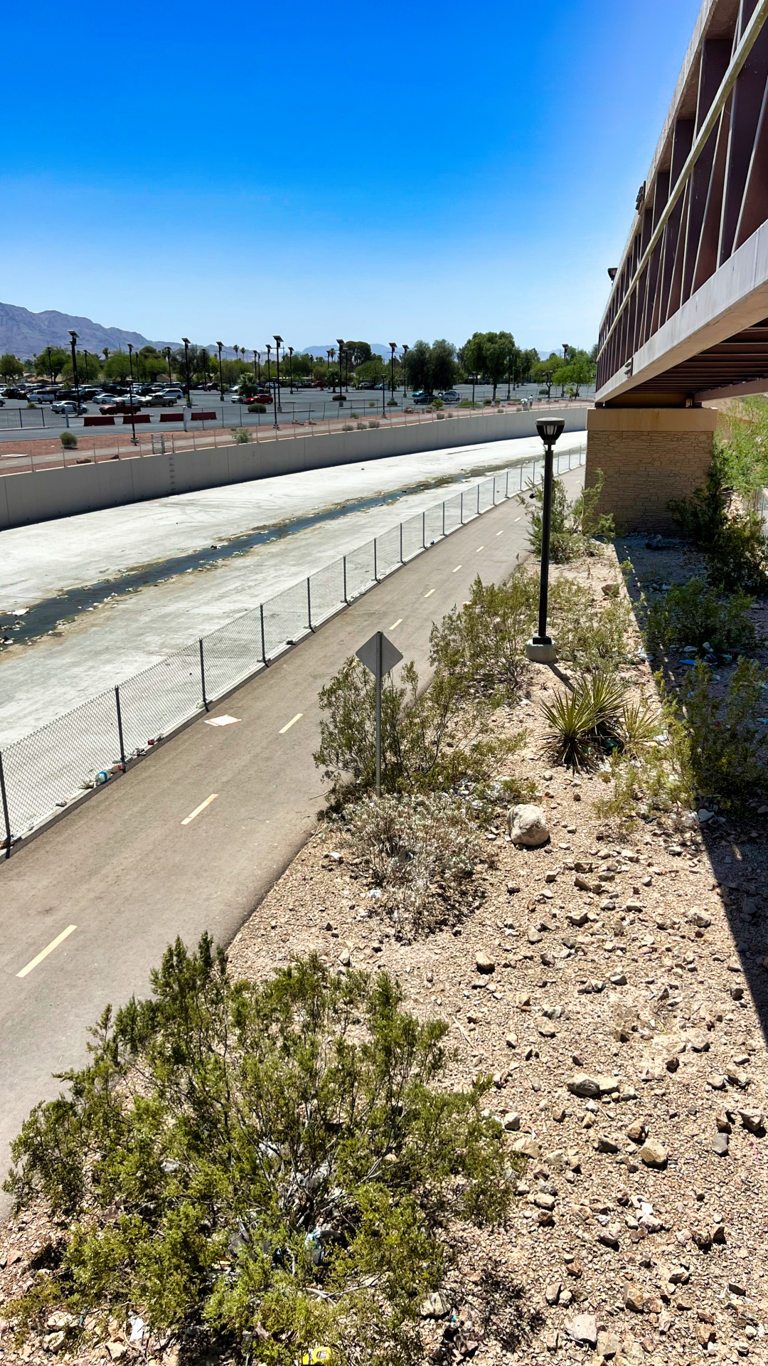 What is also interesting is the bike and walking trails. There are hardly ANY trails like this in the city, but there are in North Las Vegas. These are marked with this stone here.